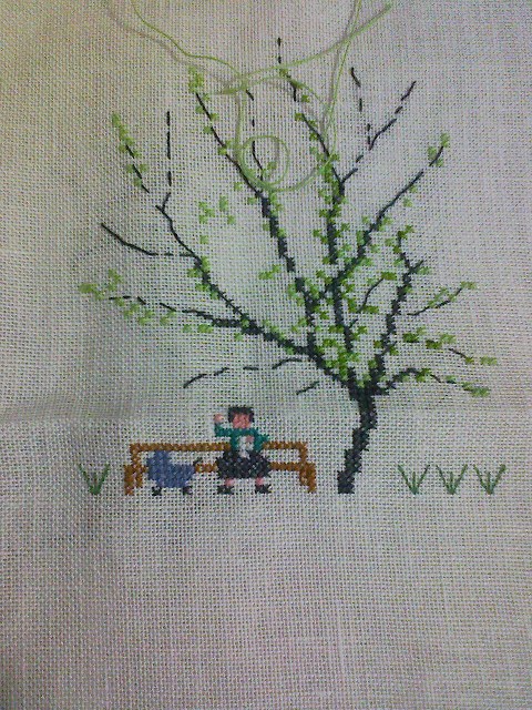 春の風景の刺繍なので、春が終わるまでに作りたいものです。