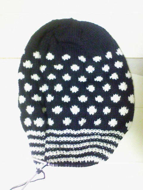 散々迷って、てっぺんから最後の水玉1列分だけほどきました。