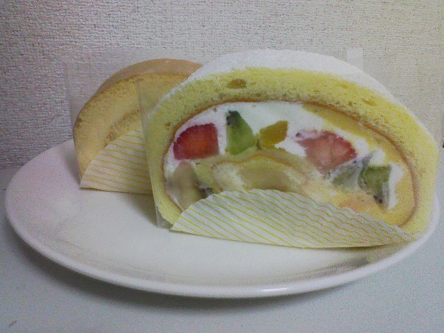 キハチのロールケーキ、フルーツのとカスタードのです。