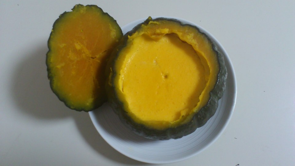 かぼちゃの皮を器にしたかぼちゃプリンを作ってみました♪