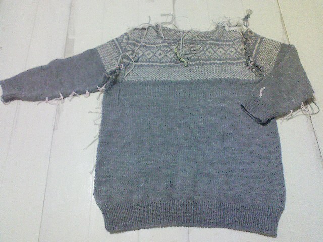 身頃、袖とも脇とじして、肩は編み込みが入っているので