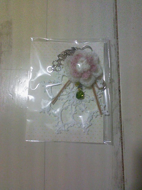 下のモチーフも手作りで、40番のレース糸で丁寧に編んであります。