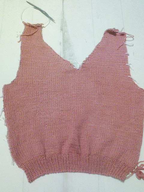 前身頃、着々と進んで、マジで襟ぐりまで5秒前~