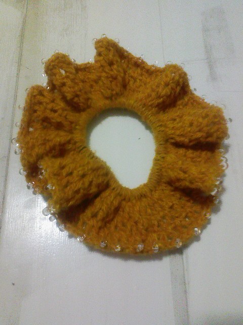 anomaさんに納品したツイード糸のシュシュが好評なようでして