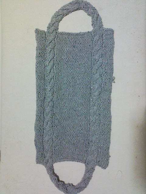 こちらの編み地は昨日紹介した編み込みで、形はシンプルに。