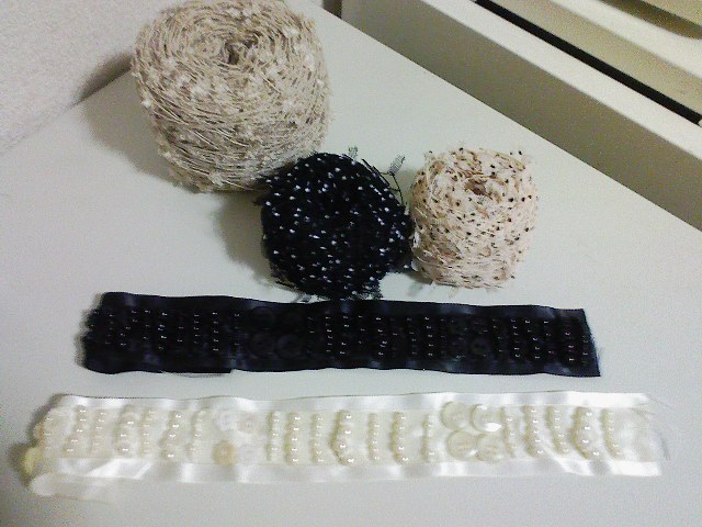 手前の糸は細い糸にところどころドット柄のチュールがついた糸で