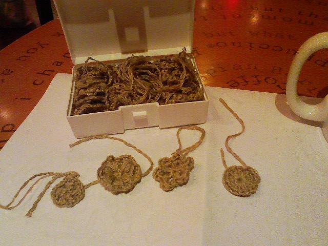 リボンのモチーフを作って、チャームにつけてみました♪