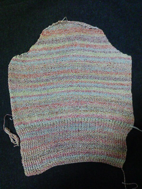 肝心の袖は、1枚目がようやく袖山の手前まで編めました。