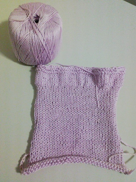 さて、以前試し編みしたラベンダー色の糸の実験第2弾。