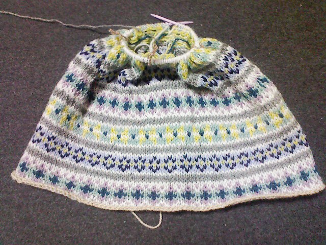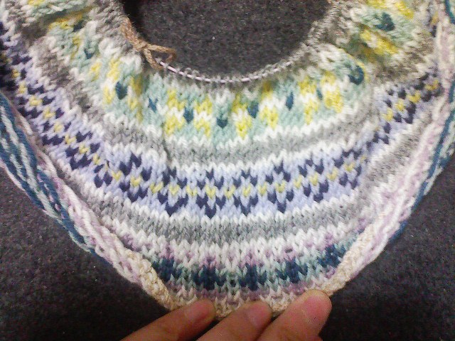 これをもう一回繰り返して、後はグレーで減らし目しながら編めば