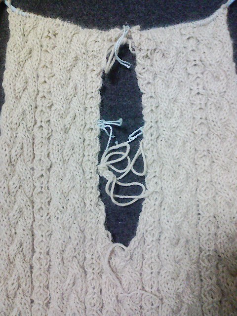この穴が襟ぐりとなって、もう片方のお袖へとつながるんですね~