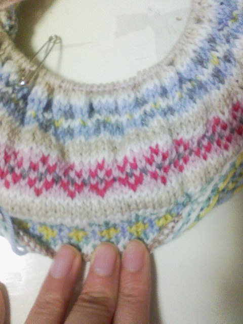 さて、編み込み帽子。2模様目完成です~