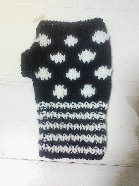 あとはゴム編み止めと親指さんゾーンを編み出して脇とじですな。