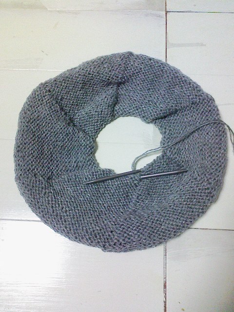 さて、中細2本どりで編んでる今年必須アイテム、