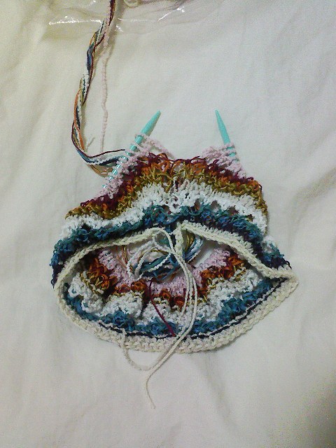 あとは裾すぼまりの部分を編んで、襟を編んだら完成、ですが
