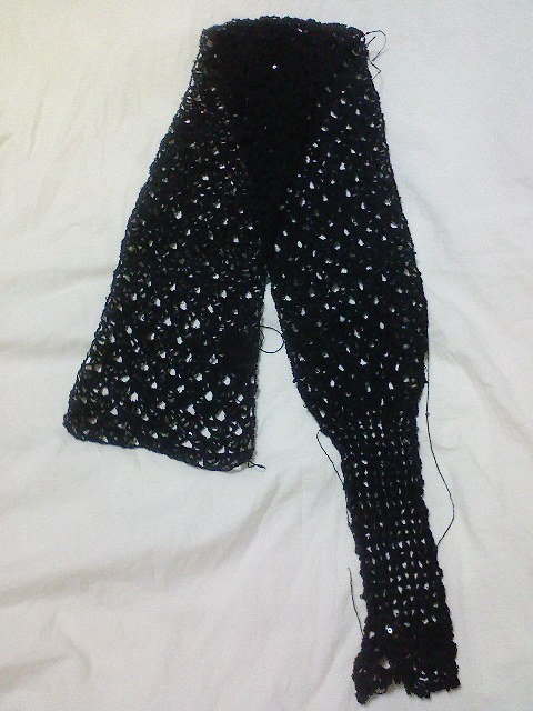 それにしても黒い編み地からの拾い目はなかなか大変でした。