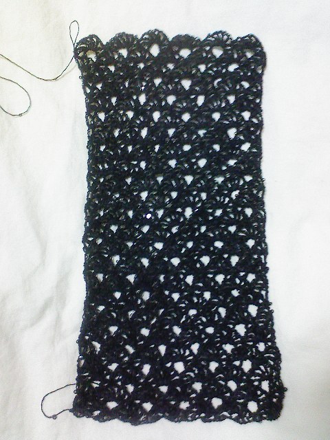 さて、スパングラス、これで2/3玉くらい編めたでしょうか。