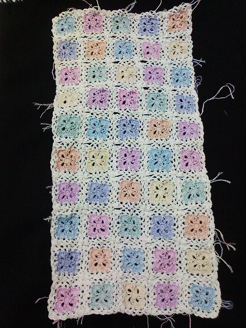 編み編みですが、モチーフつなぎが1列増えて半分超えたのと