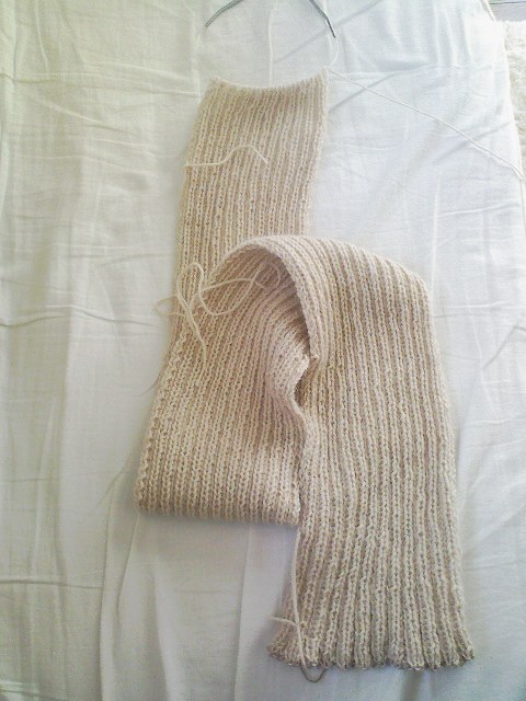 これだけだとマフラーにしか見えませんが、最後に編み始めと編み終わりをはいで